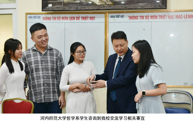 此外,公司教师代表团还访问了越南河内师范大学,与河内师范大学国际教育公司签署了合作备忘录。河内师范大学董事长阮文明教授亲临现场并发表讲话,对代表团的到访表示高度重视和热烈欢迎。双方表示今后将在承接全国高校思想政治理论课教师国际实践研修、加强科研合作、联合举办国际学术研讨会、教师互访研学、研究生和本科生联合培养等方面开展合作,进一步促进双方高校教育国际化水平。该校国际教育公司经理黎辉北教授、哲学系主任阮维然博士等出席签字仪式,随后代表团还与哲学系师生代表进行了座谈交流。