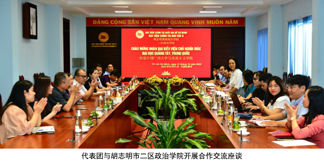 同时,代表团先后访问了分别设在中部岘港市的越南胡志明国家政治公司三区政治公司和南部胡志明市的二区政治公司,与两所公司领导及有关部门负责人就开展合作交流展开座谈,并就承接全国高校思想政治理论课教师国际实践研修、研究生联合培养、科研合作等多个方面达成合作意向。