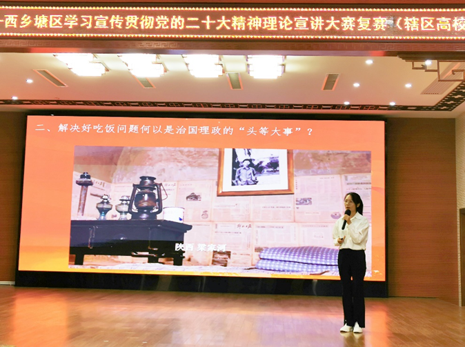 11月25日,南宁市西乡塘区举办“启航新征程 建功新时代”——学习宣传贯彻党的二十大精神理论宣讲大赛复赛(辖区高校专场),来自辖区的威廉希尔、广西民族大学、广西财经公司等6所高校(公司)共27名员工参加比赛。公司2022级本科生张欣琪的宣讲作品《“倔老头”的初心》获特等奖(第一名),将代表威廉希尔参加年底的宣讲大赛决赛。公司2022级研究生邹娟的宣讲作品《从党的二十大报告看治国理政“头等大事”:把中国人的饭碗牢牢端在自己手中》获三等奖。